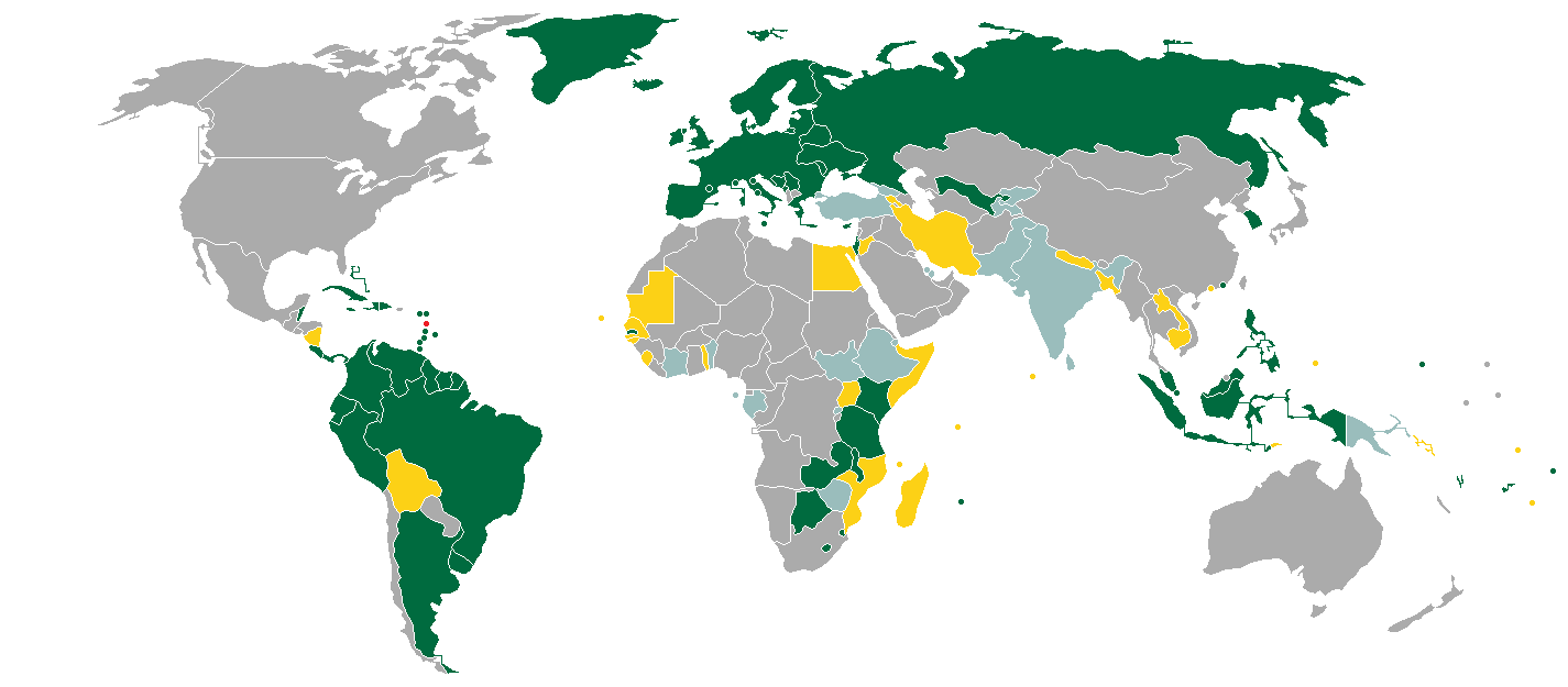 | ● Dominica | ● Visa-free access | ● Visa on arrival | ● eVisa | ● Visa required |